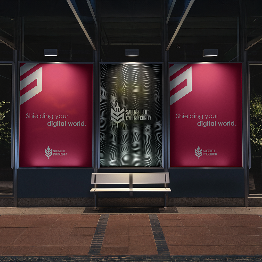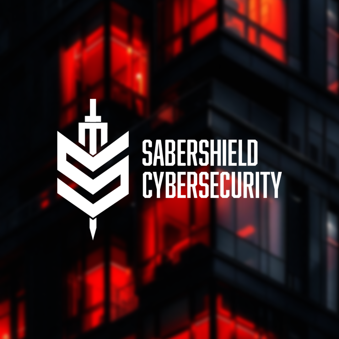 The shield shape is intentionally designed to resemble the letter “S”, directly referencing the SaberShield name and strengthening brand recognition. The central vertical form represents a saber, symbolizing strength, precision, and active defense within the cybersecurity space.