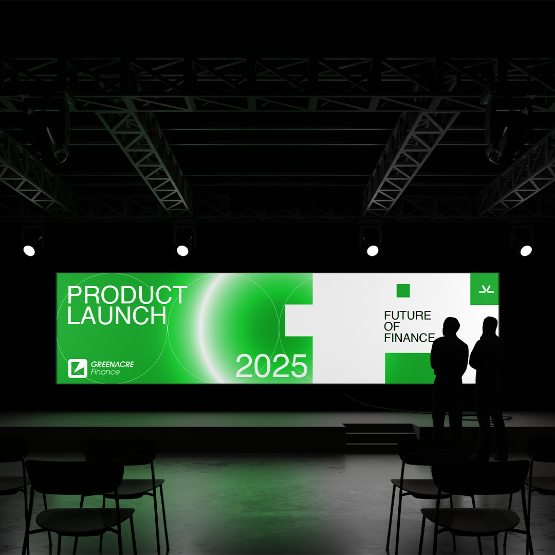 The abstract geometric form subtly references the letter “G”, directly connecting the symbol to the name Greenacre. Sharp angles and balanced negative space convey clarity, growth, and forward-thinking financial strategy.